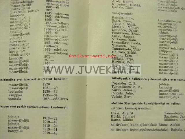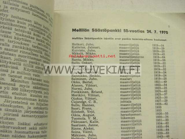 Mellilän Säästöpankki, 1970 15 x 21 cm kirjanen.