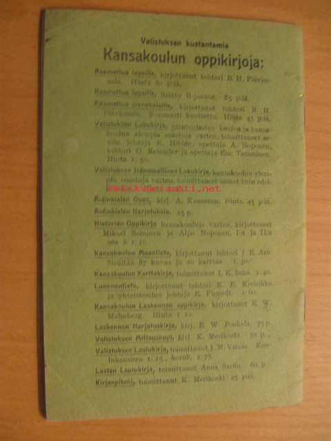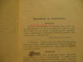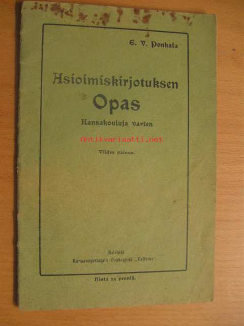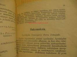 Saatavilla 1 kpl Julkaisuvuosi 1912 Sivuja 34 Painos 5. Kunto K2 mustetahroja, kannessa tahroja Sidonta/painoasu Vihko Kielet Suomi