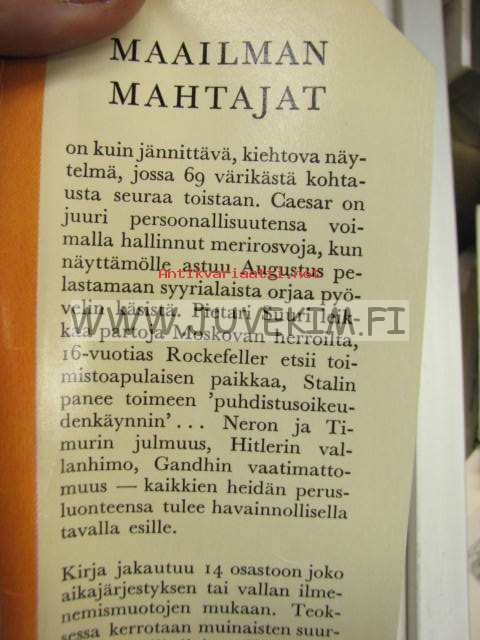 Saatavilla 1 kpl Julkaisuvuosi 1960 Sivuja 445 Painos 1. Kunto K3 Sidonta/painoasu Sidottu (kansipaperit) Kielet Suomi
