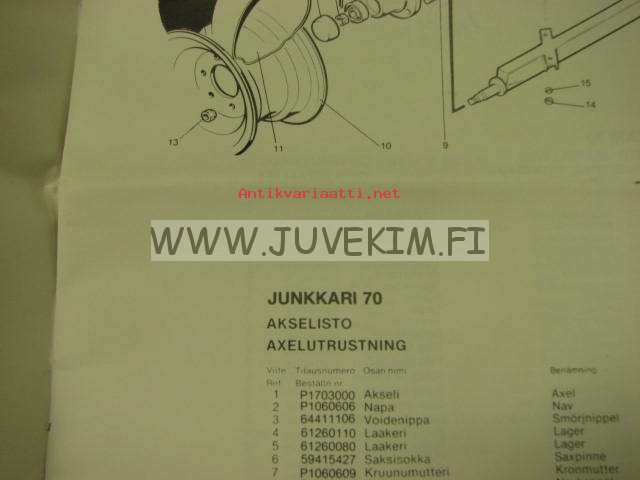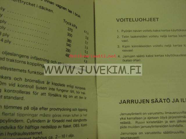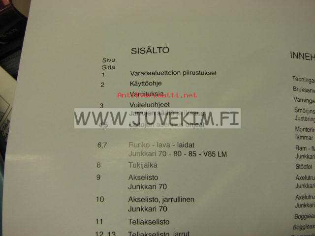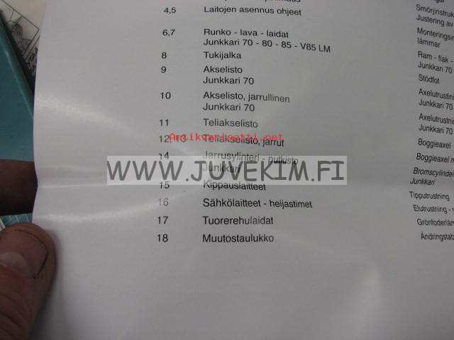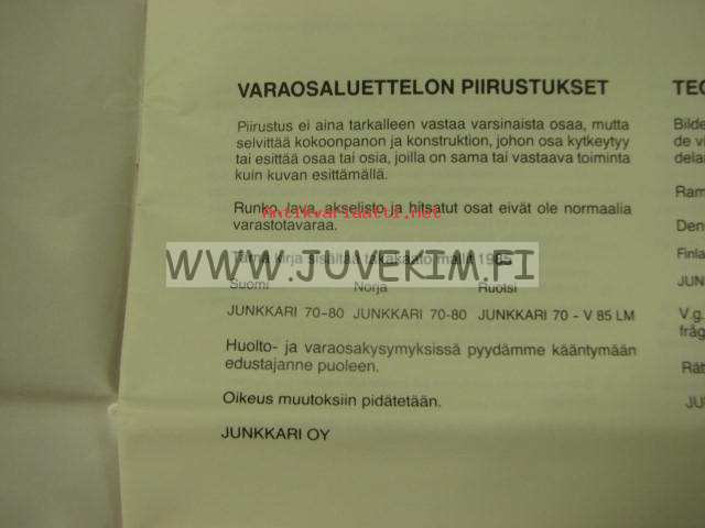 Traktoriperävaunu Junkkari 70-80-85-V85LM Traktorsläpvagn -käyttöohje ja varaosakirja / bruksanvisning och reservdelskatalog