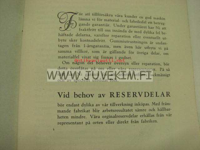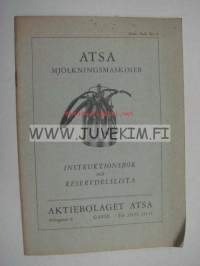Atsa mjölkningsmaskiner instruktionsbok och reservdelslista -lypsykone käyttöohjekirja ja varaosaluettelo