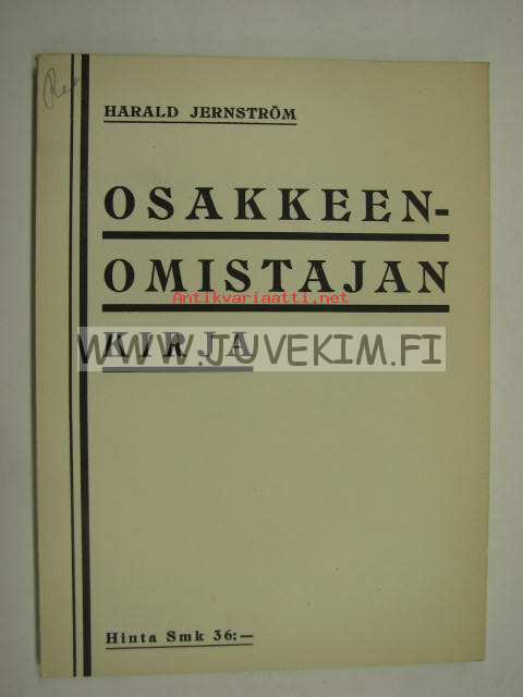 Jernström Harald, Finansbladet, 1931 14 x 19 cm kirja.