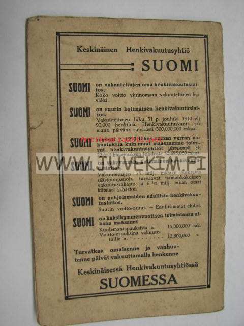 Saatavilla 1 kpl Julkaisuvuosi 1911 Sivuja 40 Kunto K2 Sidonta/painoasu Nidottu (pehmeäk.) Kielet Suomi