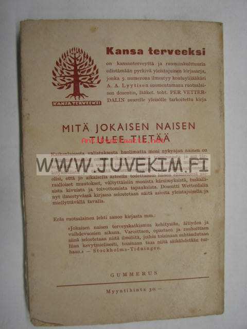 Wetterdal Per, Gummerus, 1943 13 x 19 cm kirja.