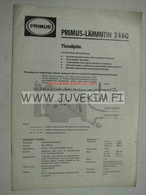 Primus-lämmitin 2460 -käyttö- ja huolto-ohjeet