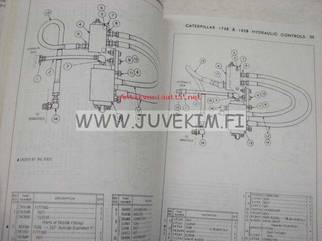 Caterpillar 173B & 183B Hydraulic controls (serial numbers 59P1, 60P1 -up) parts book -varaosaluettelo