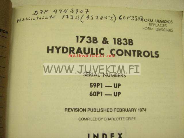Caterpillar 173B & 183B Hydraulic controls (serial numbers 59P1-up, 60P -up) parts book -varaosaluettelo