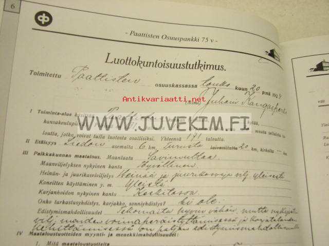 Paattisten Osuuspankki 1924-1999 75 vuotta