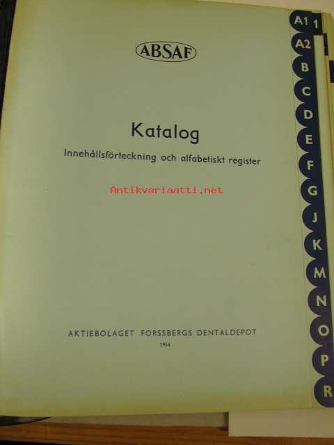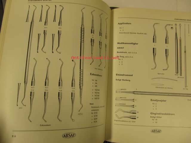 Aktiebolaget Forssbergs Dentaldepot -hammaslääkärivälineitten tuoteluettelo