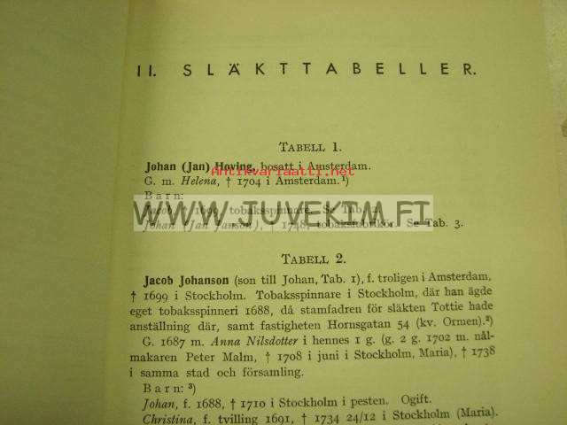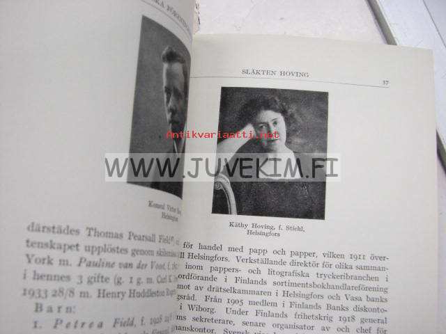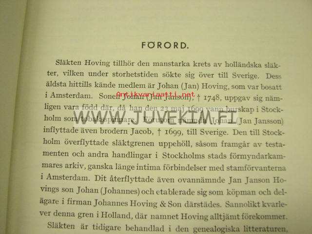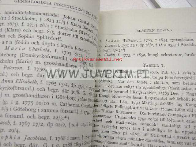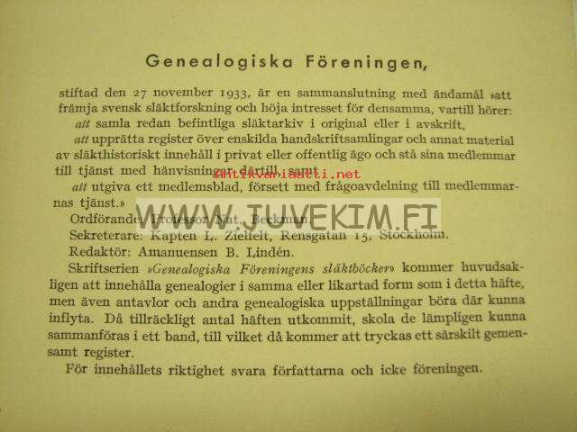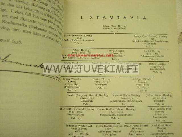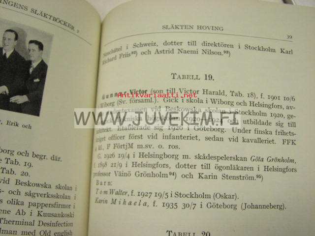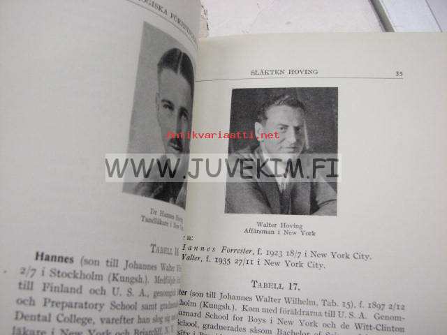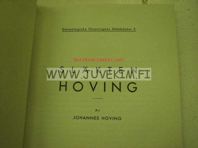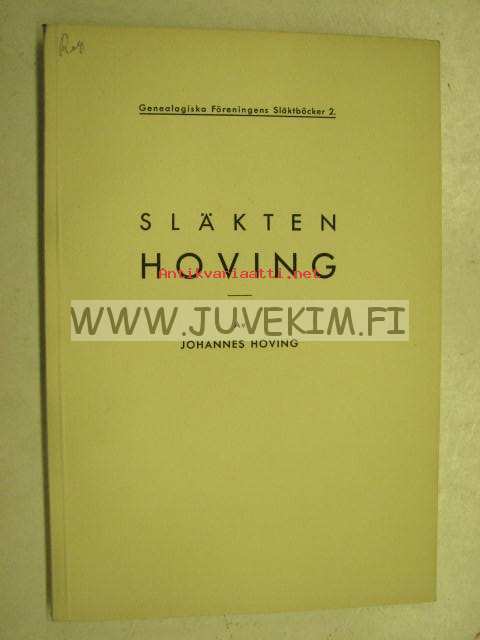 Johannes Hoving, Genealogiska Förening, 1938 15 x 22 cm kirja.