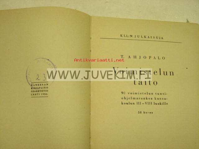 Ahjopalo T., Kansakoulujen Liikuntakasvatusliitto, 1950 14 x 19 cm kirja.