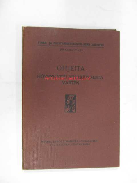 Saatavilla 1 kpl Julkaisuvuosi 1928 Sivuja 54 Painos 1. Kunto K3 Sidonta/painoasu Sidottu (kovak.) Kielet Suomi