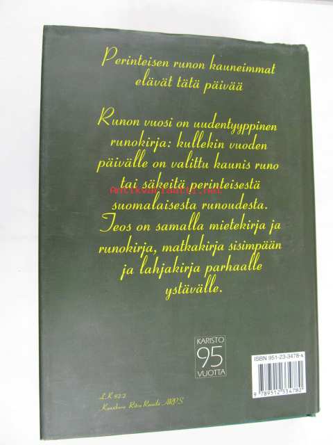 Saatavilla 1 kpl Julkaisuvuosi 1995 Kunto K5 Sidonta/painoasu Sidottu (kansipaperit) ISBN 951-23-3478-x Kielet Suomi