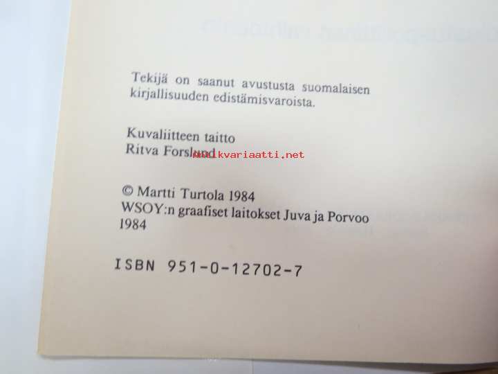 Saatavilla 1 kpl Julkaisuvuosi 1984 Sivuja 259 Painos 1. Kunto K3 Sidonta/painoasu Sidottu (kansipaperit) ISBN 951-0-12702-7 Kielet Suomi