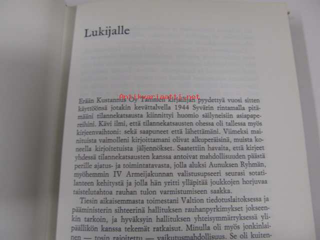 Saatavilla 1 kpl Julkaisuvuosi 1972 Sivuja 249 Painos 2. Kunto K5 Sidonta/painoasu Sidottu (kansipaperit) ISBN 951-30-2324-9 Kielet Suomi