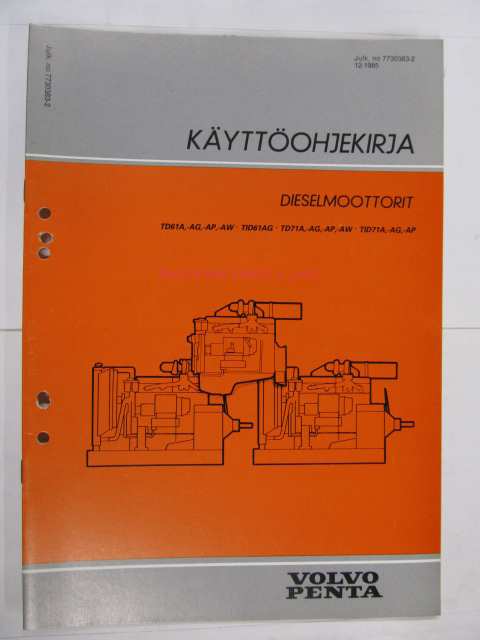 Volvo Penta TD61A,-AG,-AP,-AW, TID61AG, TD71A,-AG,-AP,-AW, TID71A,-AG,-AP dieselmoottorit -käyttöohjekirja
