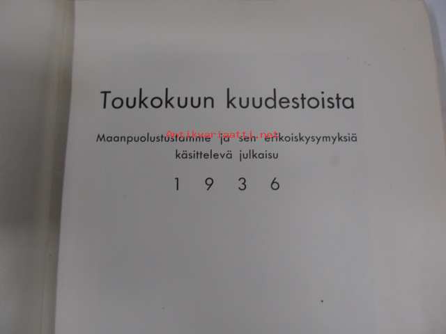 Toukokuun 16. 1936 Maanpuolustustamme ja sen erikoiskysymyksiä käsittelevä julkaisu