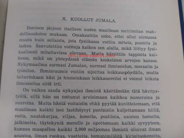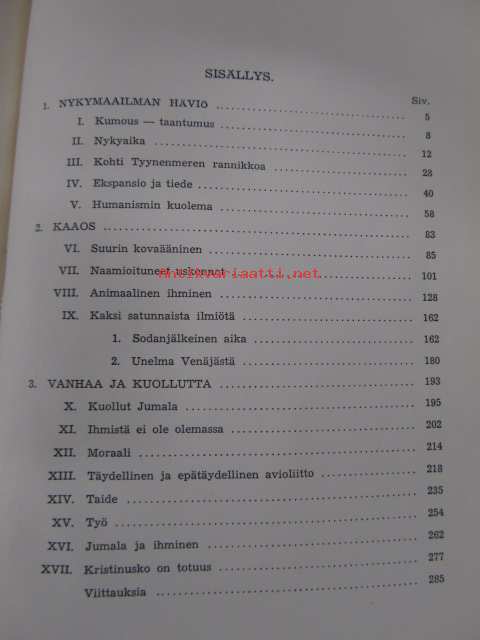 | Saatavilla | 1 kpl | | Julkaisuvuosi | 1937 | | Sivuja | 284 | | Painos | 1. | | Kunto | K3 | | Sidonta/painoasu | Sidottu (kovak.) | | Kielet | Suomi |