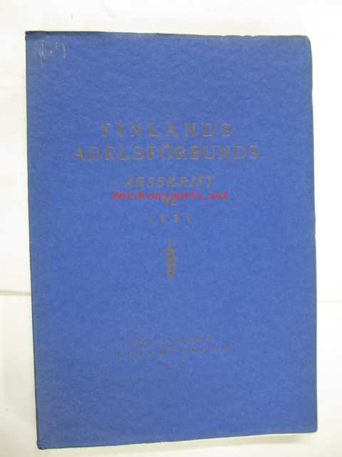 Finlands Adelsförbunds Årsskrift VI 1931 -vuosikirja mm. henkilöartikkeleineen