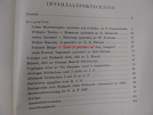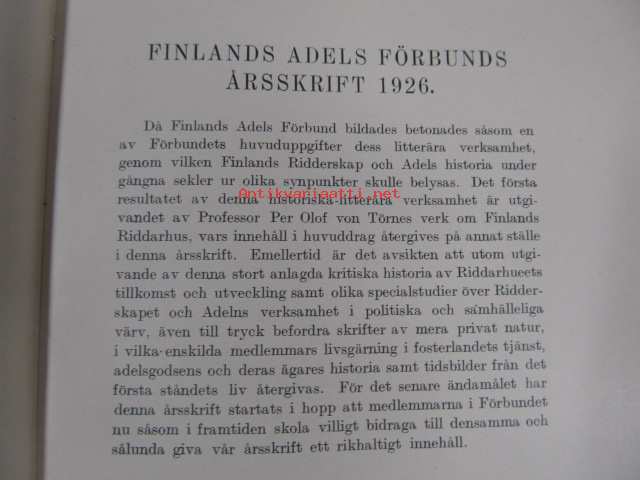 Finlands Adelsförbunds Årsskrift I 1926 -vuosikirja mm. henkilöartikkeleineen
