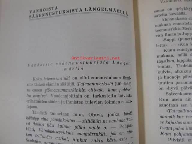 | Saatavilla | 0 kpl (Huom. tuote on myyty! / Sold out!) | | Julkaisuvuosi | 1935 | | Sivuja | 244 | | Painos | 1. | | Kunto | K3 | | Sidonta/painoasu | Sidottu (kovak.) | | Kielet | Suomi |