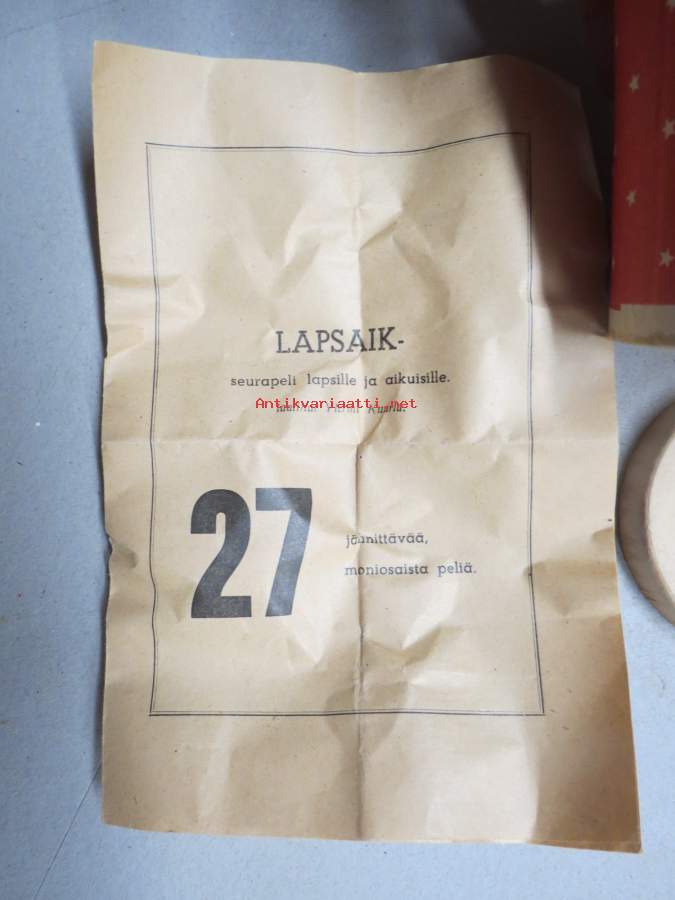 Lapsaik -seurapeli, suunnittelija Ylermi Kuurla / julkaisija Sotainvaliidien Veljesliitto -erittäin harvinainen kotimainen lautapeli