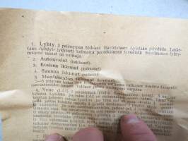 | Saatavilla | 0 kpl (Huom. tuote on myyty! / Sold out!) | | Julkaisuvuosi | 1947 | | Kunto | K2 | | Kartonkisten pyörylöitten määrää ei ole laskettu. | | Sidonta/painoasu | Muu | | Kielet | Suomi |