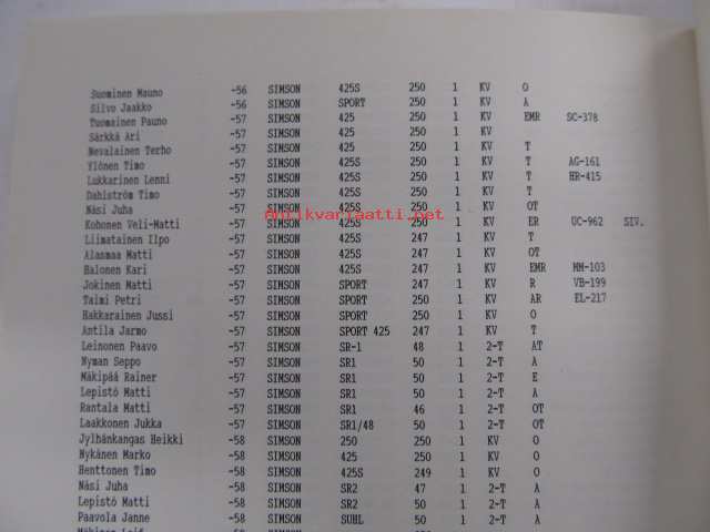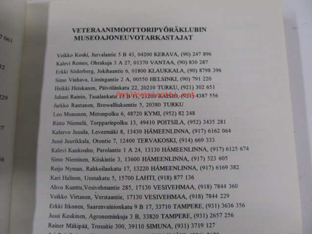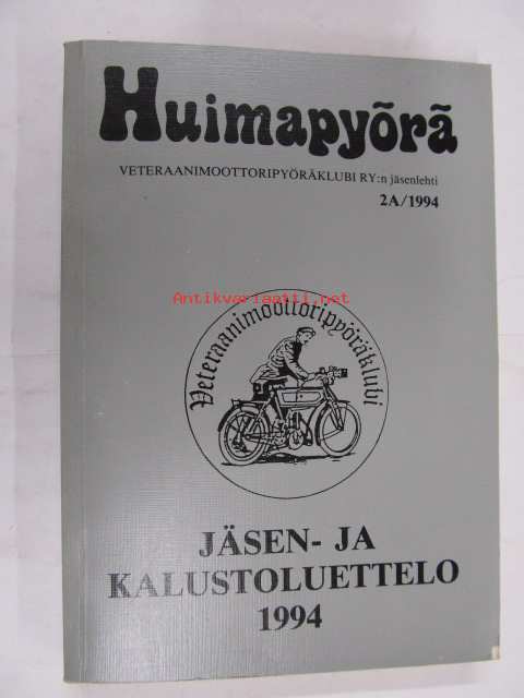 Huimapyörä. Veteraanimoottoripyöräklubin ry:n jäsenlehti 2A/1994 / Jäsen- ja kalusteluettelo 1994