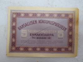 |  | Kansallisen Kokoomuspuolueen Suurarpajaisten 1928 Ennakkoarpa, 5 mk, nr 018446 -lottery ticket