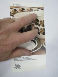 Arabia Ruija design Ulla Procopé / Raija Uosikkinen -myyntiesite malli- ja mittatietoineen