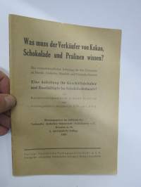 Was muss der Verkäufer von Kakao, Schokolade und Pralinen wissen? -saksalainen kaakaon ja suklaanostajan opas, kuulunut Heikki Huhtamäen henkilökohtaiseen kirjastoon