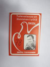 |  | Tulevaisuus on ihmisten työtä - SKDL, Seppo Toiviainen, nr 78 -vasemmistolainen 1970-luvun tuki- ja solidaarisuus- / varainkeruumerkki -tarra