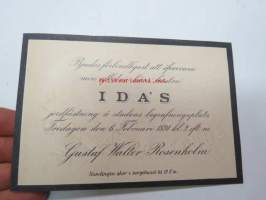 Pyydämme ystävyydellä läsnäolemaan Meidän Wihkiäisissämme, sunnuntaina lokakuun 12 p:nä 1902, Maariassa Kastun tilalla, Wallinin torppa nr 37 - Ida Wallin
