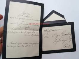 Fröken Olga Helin bjudes att med sin närvaro behedra Färgaremästaren Carl Justus Blomqvists och vår dotter Josefinas bröllopsfest å Kuppis invid Åbo,