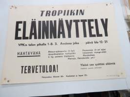 Tropiikin Eläinnäyttely VPK:n talon pihalla 1-8.3.1959 "Yleisö saa syöttää eläimiä" -juliste / poster