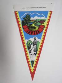 Suomussalmi -kangasmerkki / matkailumerkki / hihamerkki / badge -pohjaväri punainen