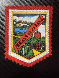 Heinola -kangasmerkki / matkailumerkki / hihamerkki / badge -pohjaväri punainen