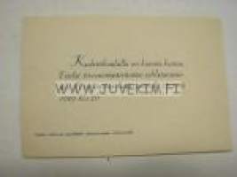 Asunto-osakeyhtiö Kivi 26 25-vuotisjuhlakokous 29.4.1950 ravintola Alkola Iso-Roobertinkatu 28 -kutsukortti