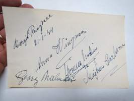 Georg Malmstén, Lasse Pihlajamaa, Margit Ringvall + useita muita -nimikirjoitus / signature - autograph