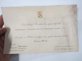 Republikens President har äran att inbjuda Bergsrådet , Friherre och Friherrinnan Palmén till soare i Slottet 6.12.1939 -kutsu itsenäisyyspäivän vastaanotolle